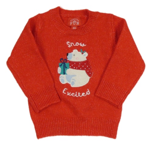 Červený svetr s medvědem