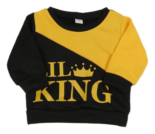 Černo-tmavožlutá mikina s nápisy a korunkou