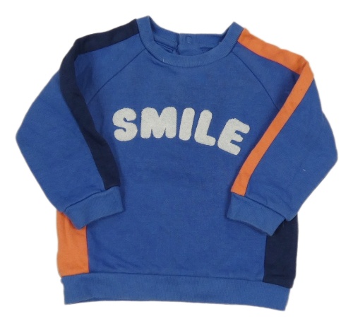 Modrá mikina s oranžovým pruhem a nápisem M&S