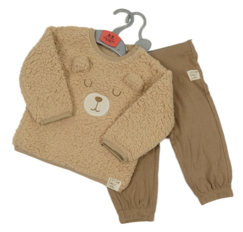 Nové - 2set - Písková huňatá mikina s medvědem + hnědé žebrované tepláky Dunnes