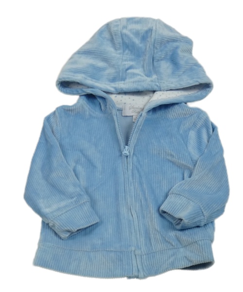 Světlemodrá žebrovaná sametová propínací mikina s kapucí