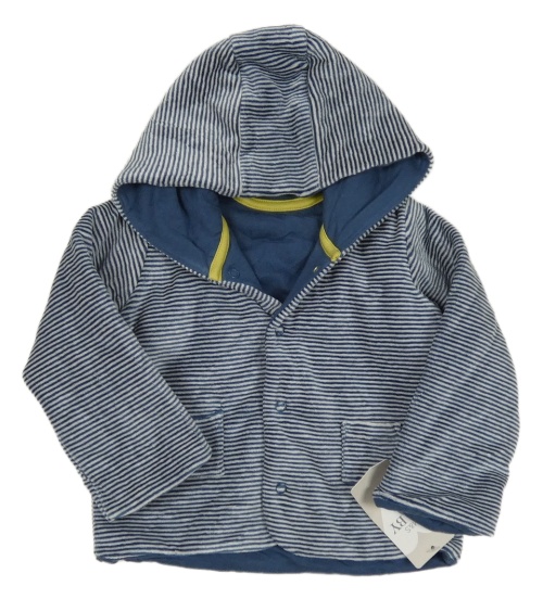 Nové - Modrá pruhovaná sametová zateplená propínací mikina s kapucí M&S
