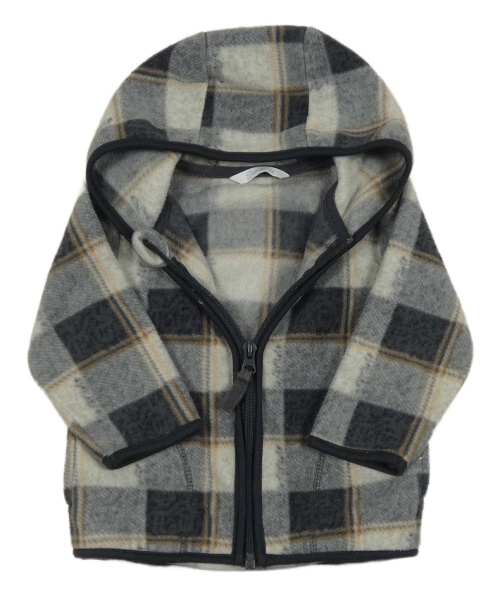 Šedo-černo-hnědá kostkovaná fleecová propínací mikina s kapucí