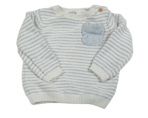 Bílo-světlemodrý pruhovaný svetr s kapsou F&F