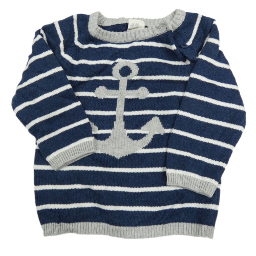 Tmavomodro-bílý pruhovaný svetr s kotvou H&M
