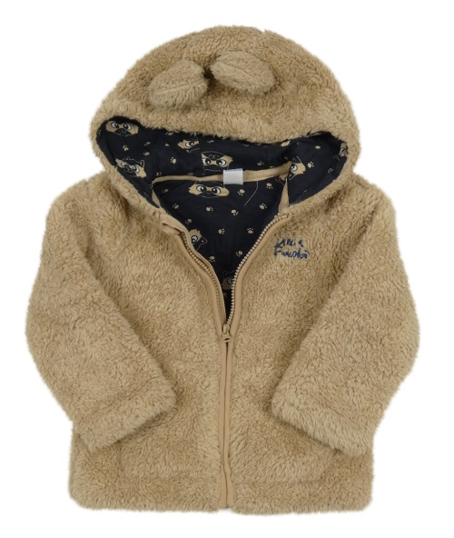 Hnědá chlupatá podšitá propínací mikina s nápisem a kapucí Dopodopo