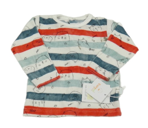Nové - Bílo-modro-červená pruhovaná sametová mikina s kočkami
