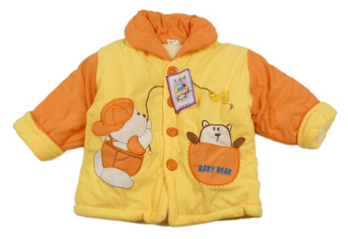Nové - Žluto-oranžová žebrovaná zateplená propínací mikina s medvědem