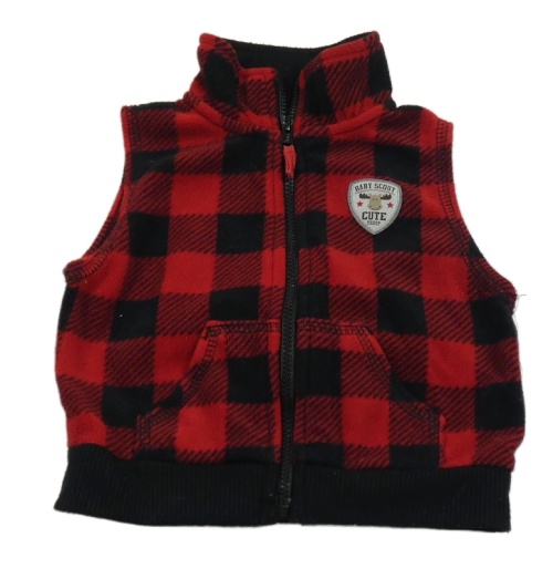 Červeno-černá kostkovaná fleecová propínací vesta s nášivkou Carters