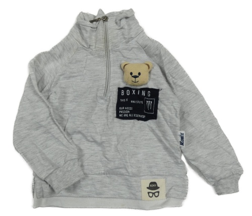 Světlešedá melírovaná mikina s medvědem a nášivkou