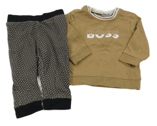 2set- hnědá mikina s nápisem+ černé vzorované lehké tepláky