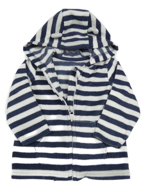 Tmavomodro-bílá pruhovaná fleecová propínací mikina s kapucí George