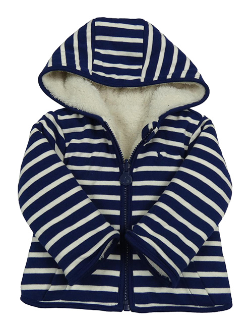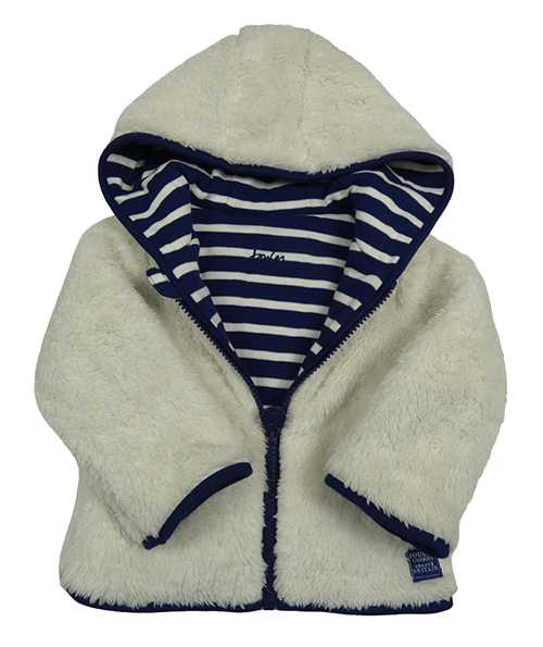 Tmavomodro-smetanová pruhovaná zateplená oboustranná mikina s kapucí Joules
