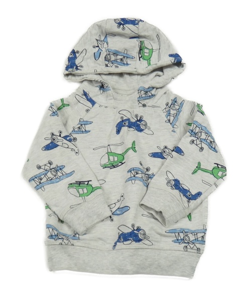Světlešedá melírovaná mikina s letadly a kapucí Topomini