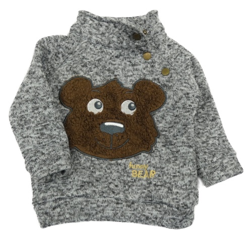 Šedá melírovaná pletená mikina s medvědem a stojáčkem