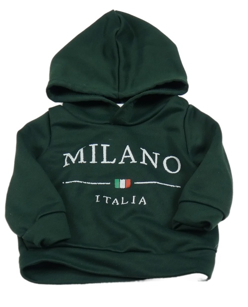 Tmavozelená sportovní mikina s nápisem a kapucí