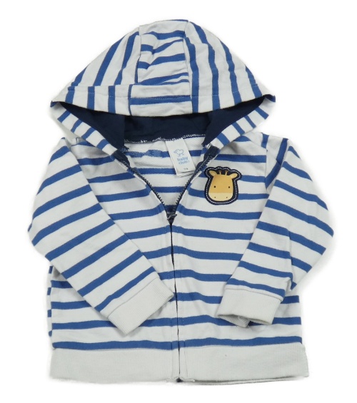 Bílo-modrá pruhovaná propínací mikina s žirafou a kapucí C&A