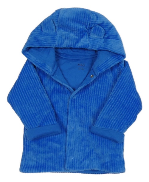 Modrá žebrovaná sametová zateplená propínací mikina s kapucí M&S