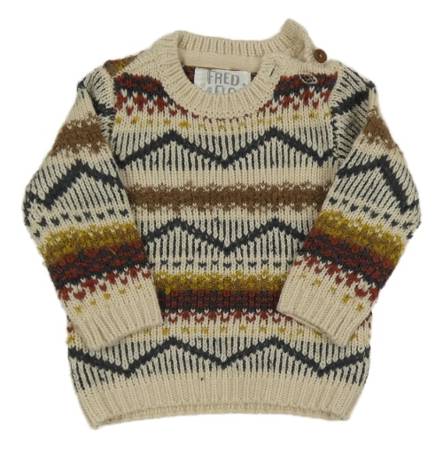 Smetanovo-tmavomodro-béžovo-barevný vzorovaný vlněný svetr F&F