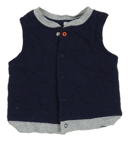 Tmavomodrá prošívaná zateplená propínací vesta s auty Bluezoo