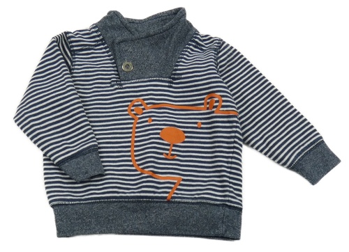Tmavomodro-šedá pruhovaná mikina s medvědem Topomini