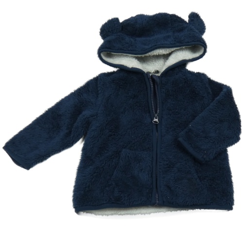Tmavomodrá chlupatá zateplená propínací mikina s kapucí s oušky Peacocks
