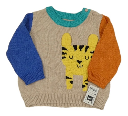 Nové - Béžovo-modro-oranžový svetr s tygrem Dunnes