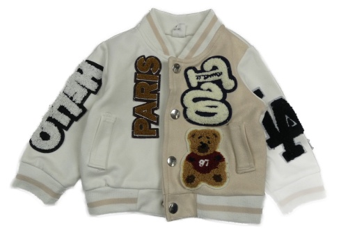 Bílo-béžová baseballová mikina s medvědy a nápisy Shein
