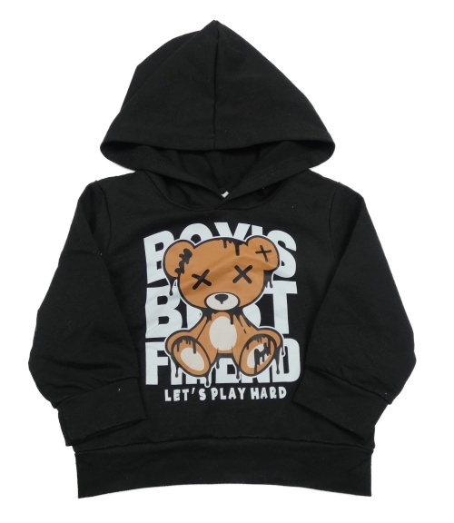 Černá mikina s medvídkem a nápisy a kapucí SHEIN