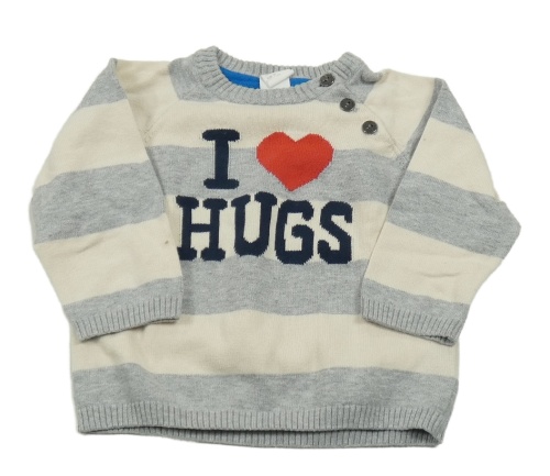 Šedo-béžový pruhovaný svetr s nápisem se srdcem H&M