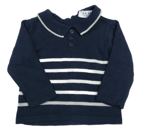 Tmavomodro-šedý pruhovaný svetr s límečkem