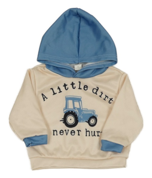 Smetanovo-modrá mikina s traktorem a kapucí SHEIN