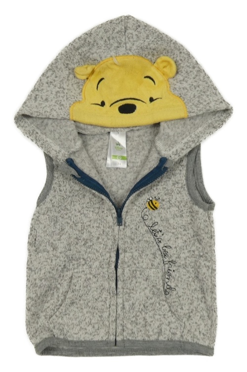 Šedá melírovaná pletená propínací vesta s Medvídkem Pú a kapucí C&A