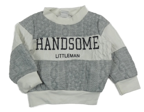 Šedo-bílá pruhovaná mikina s nápisem