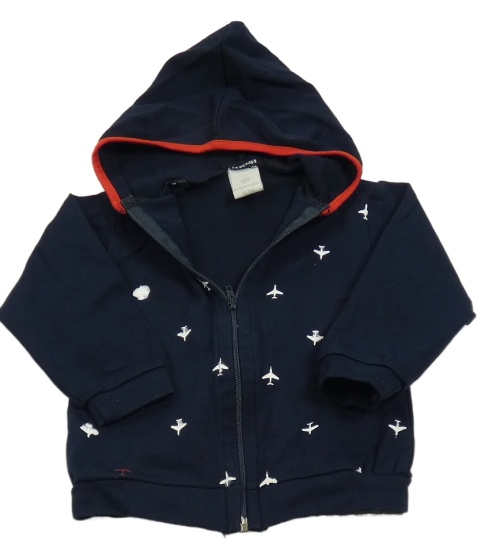 Tmavomodro-červená propínací mikina s letadly