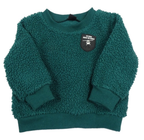 Tmavozelená huňatá mikina s nášivkou
