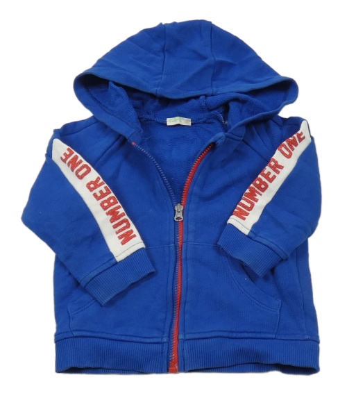 Modrá propínací mikina s bílým pruhem na rukávu a kapucí Benetton