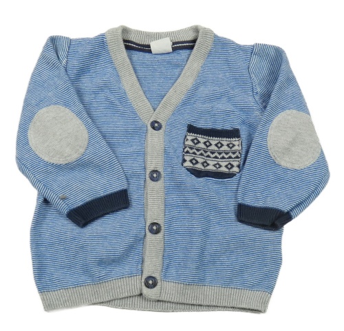 Modro-šedý pruhovaný lehký propínací svetr s kapsou H&M