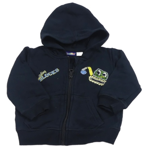Tmavomodrá propínací mikina s bagrem a kapucí Lupilu