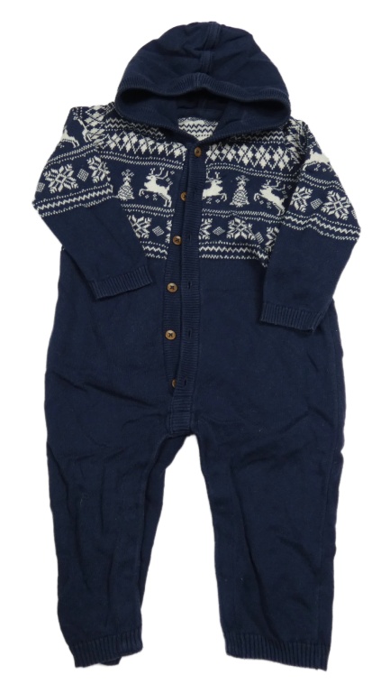 Tmavomodrá vzorovaná pletená kombinéza se zimním motivem a kapucí George
