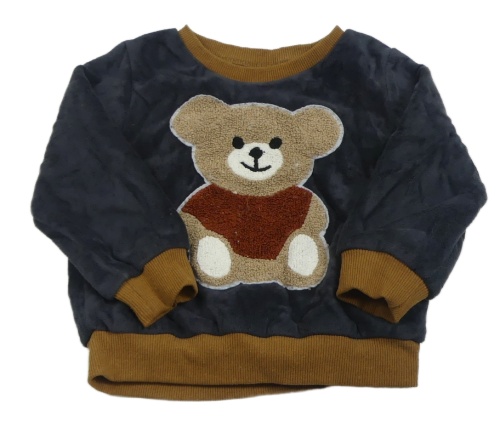 Tmavošedo-hnědá plyšová teplá mikina s medvědem