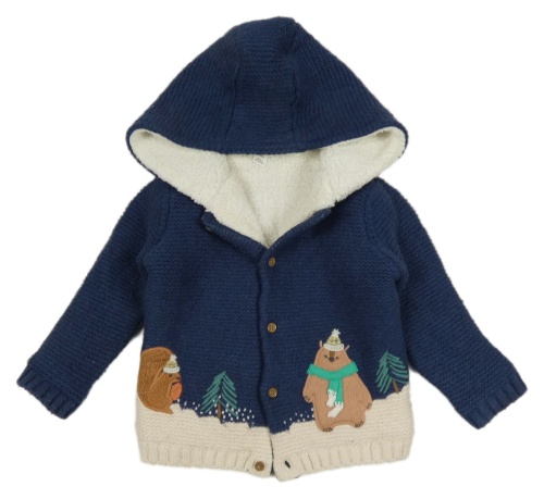 Tmavomodrý propínací zateplený svetr se zvířátky a kapucí M&S