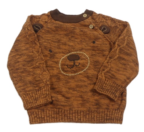 Rezavo-hnědý melírovaný svetr s medvědem Nutmeg