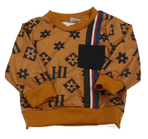 Hnědá vzorovaná mikina s pruhy a kapsou