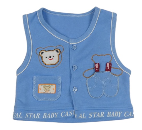 Modrá propínací tepláková vesta s medvědem a nápsiem