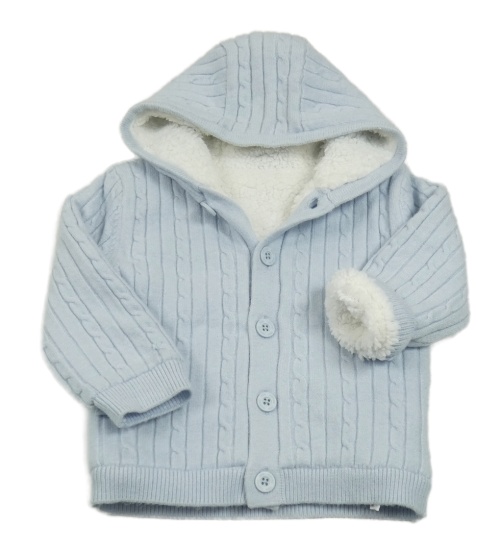 Světlemodrý vzorovaný zateplený propínací svetr s kapucí Nutmeg