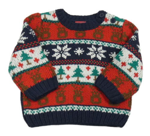 Tmavomodo-červeno-bílý vánoční vzorovaný svetr