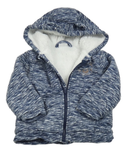 Tmavomodrá melírovaná zateplená fleecová propínací mikina s medvídkem a kapucí Orsolino