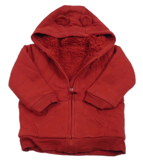 Červená propínací zateplená mikina s autíčkem a kapucí George