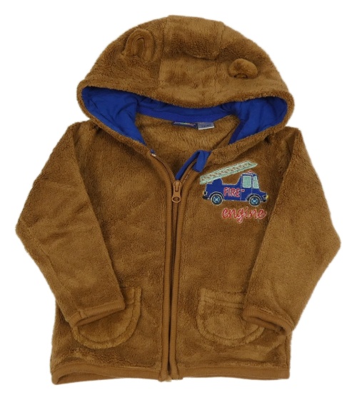Hnědá chlupatá propínací mikina s hasiči a kapucí Lupilu